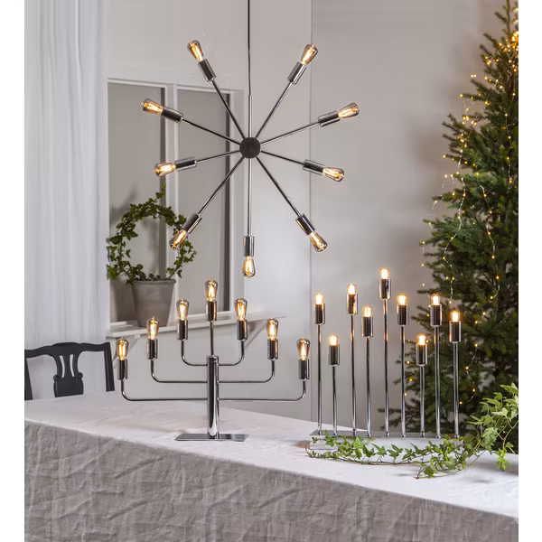 Stilren hängande metallstjärna i silver. Sladden är hela 350cm lång, vilket förenklar när man ska hänga upp stjärnan.