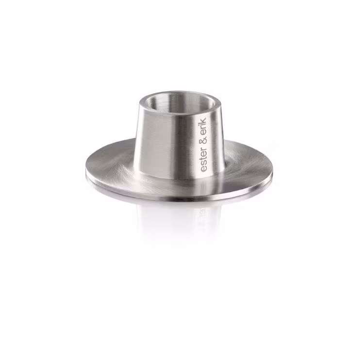 Stilren och vacker ljusstake från Ester & Erik. Gjord i ett stycke. Ljusstaken passar till vanliga kronljus på 2 cm. Finns i blank och matt, silver och guld.