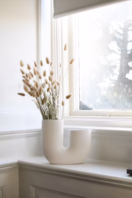 Snygg vas i matt keramik. Stråvalla vasen är otroligt tilltalande, annorlunda och väldigt stilren, lika fin utan blommor som med. Finns i vit och mörkgrå.